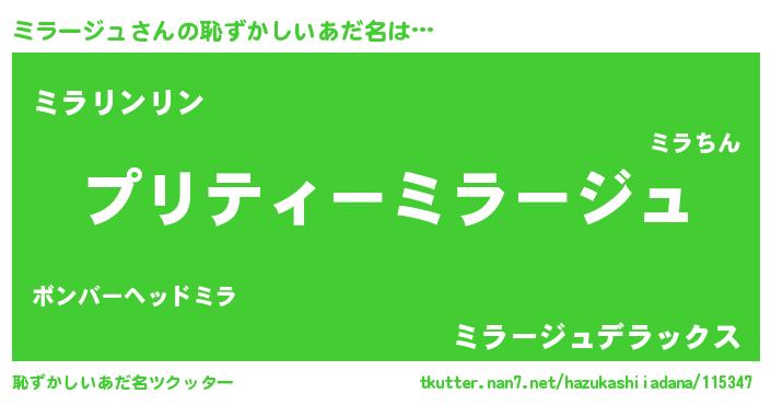 | ヘコむあだ名 | 『ミラにゅー』『ミラ太郎』 |