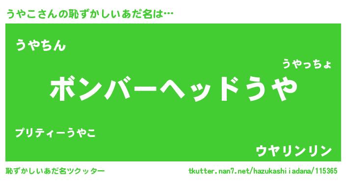 | ヘコむあだ名 | 『うやこ(笑)』『うやぷりん』『豆乳』 |