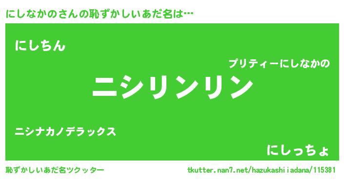 | ヘコむあだ名 | 『にしお』『にしなかの(震え声)』 |