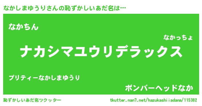 | 男性向けラノベタイトル風あだ名 | 『Re:なかしまゆうりから始める異世界生活』 |