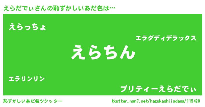 | ヘコむあだ名 | 『えらだでぃ(苦笑)』『なまこ酢』 |