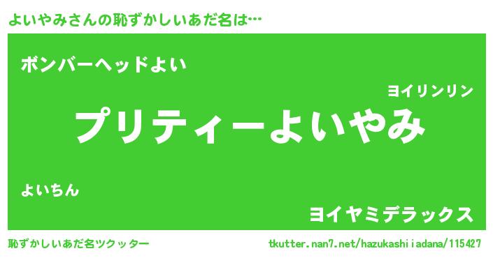 | 意味不明あだ名 | 『ペロリンよいやみ』『自称よいやみ』 |