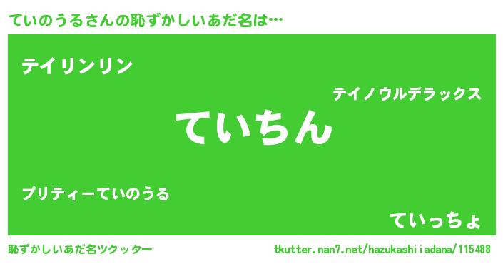 | 男性向けラノベタイトル風あだ名 | 『ていのうるという概念が存在しない退屈な世界 』 |
