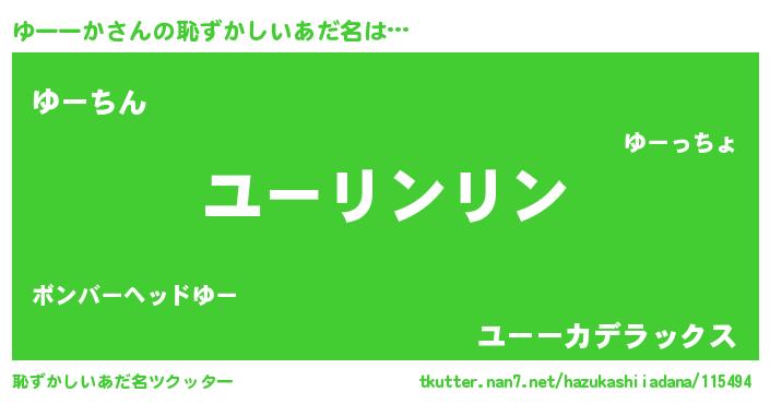 | 女子向けラノベタイトル風あだ名 | 『ゆーーかは平凡を望む』『闇のゆーーか』 |