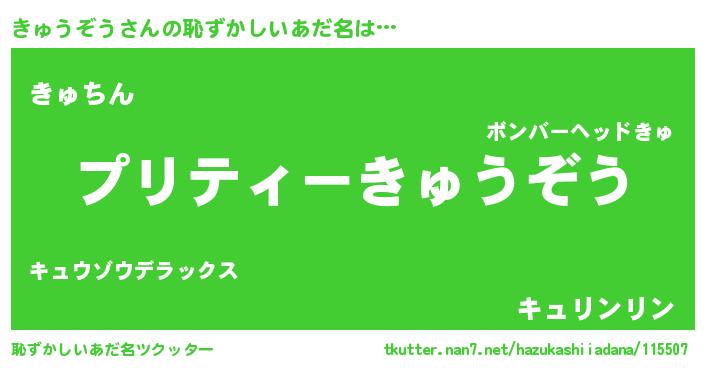 | ヒーロー風カッコイイあだ名 | 『スーパーキュウゾウ』『仮面キュダー』 |