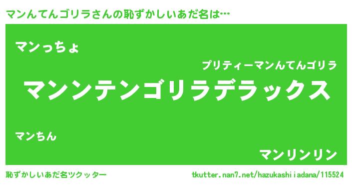 | 意味不明あだ名 | 『自称マンんてんゴリラ』 |