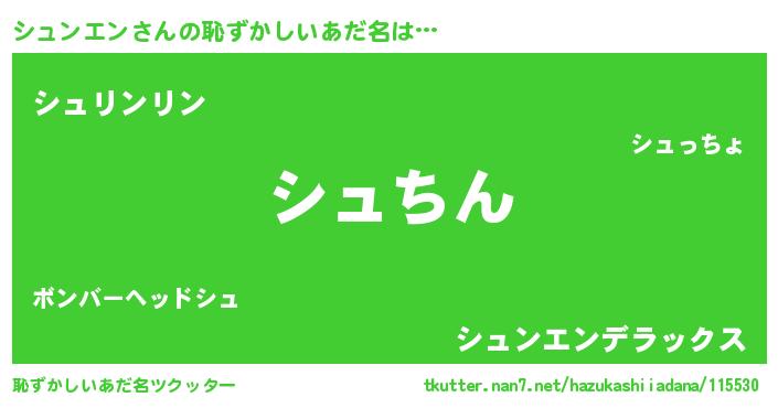 | ヘコむあだ名 | 『シュンエン(爆)』『シュ太郎』 |