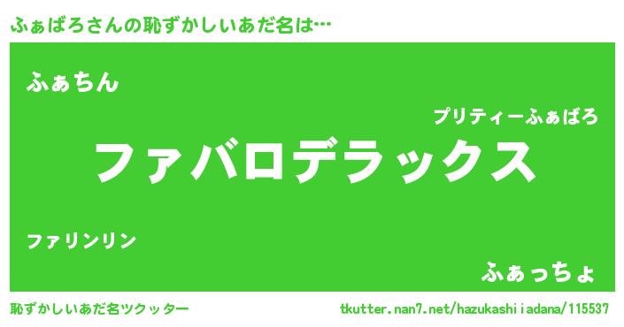 | 意味不明あだ名 | 『自称ふぁばろ』『永久保存ふぁばろ』 |