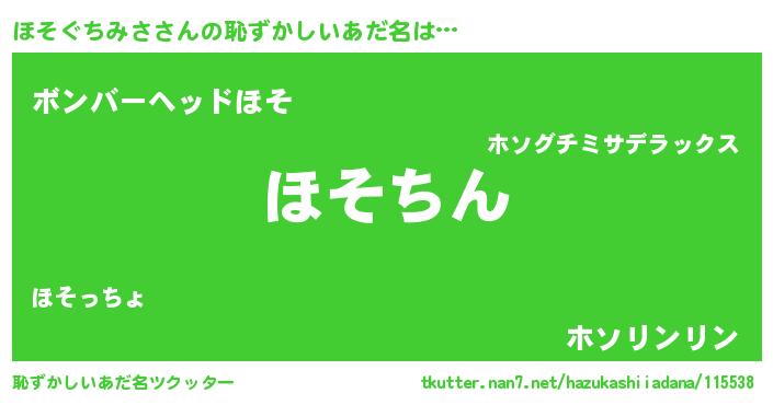 | ヘコむあだ名 | 『ほそぐちみさ(遠い目)』『ほそっぺ』 |