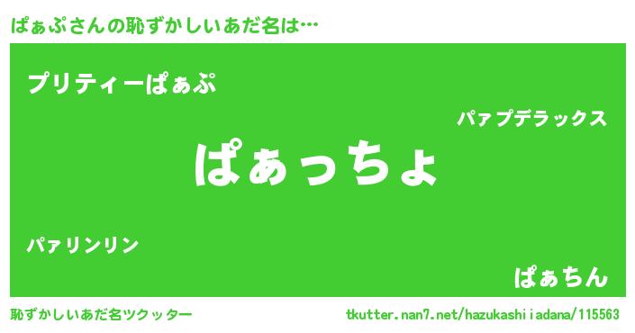 | 意味不明あだ名 | 『ぱぁぷフォーエバー』『ペロリンぱぁぷ』 |