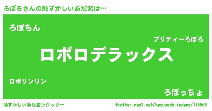 | 女子向けラノベタイトル風あだ名 | 『ろぼろなんてお断りですっ。』 |