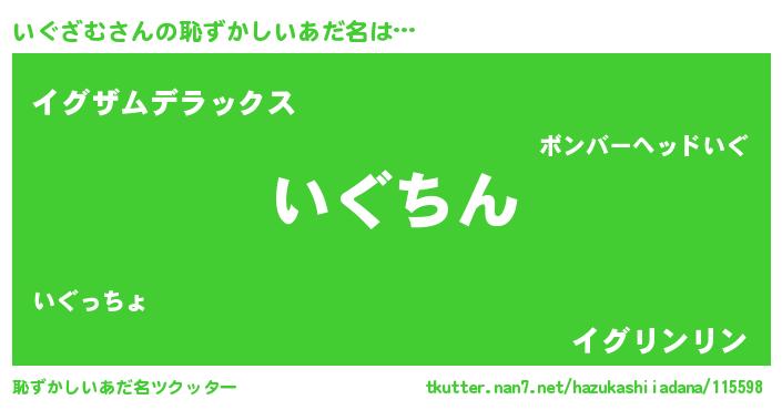 | ヘコむあだ名 | 『いぐざむ(苦笑)』『いぐっちょ』 |