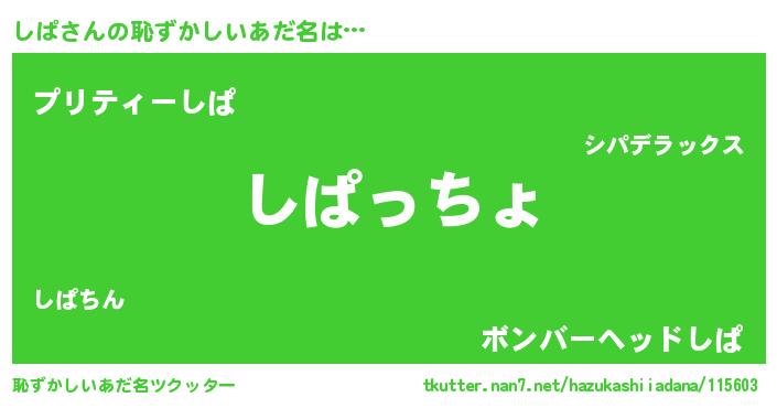 | 意味不明あだ名 | 『しぱフォーエバー』『ペロリンしぱ』 |