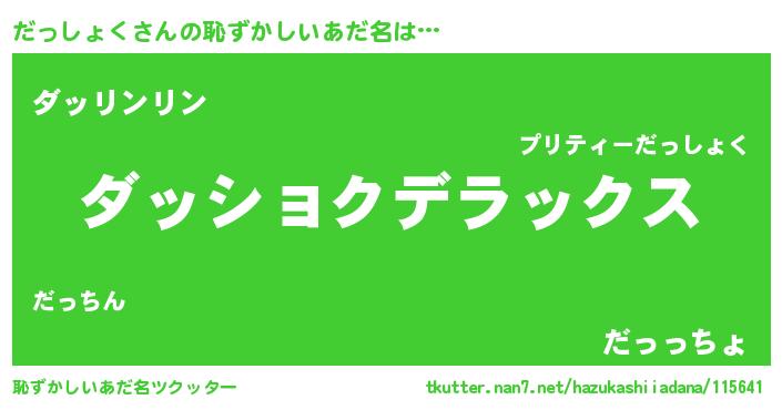 | 意味不明あだ名 | 『自称だっしょく』『ペロリンだっしょく』 |