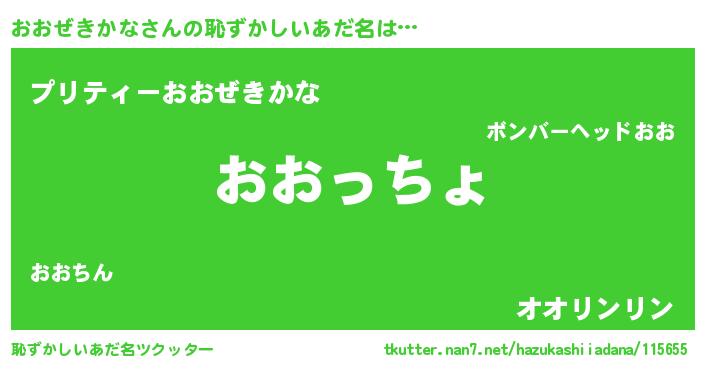 | 意味不明あだ名 | 『住所不定無職おおぜきかな(79歳)』 |