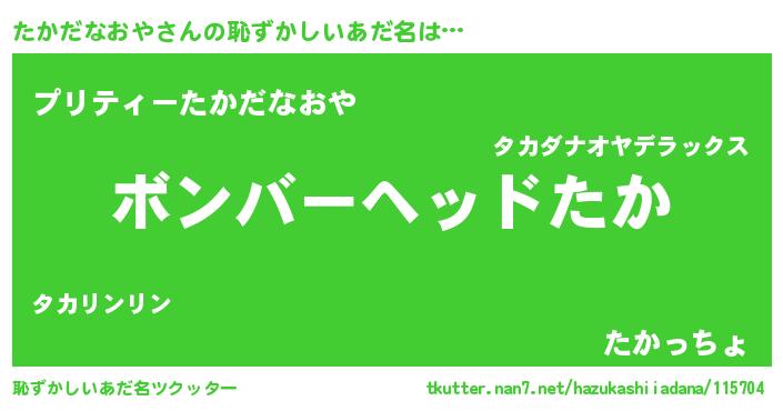 | ヒーロー風カッコイイあだ名 | 『愛の使者たかだなおや』『仮面タカダー』 |