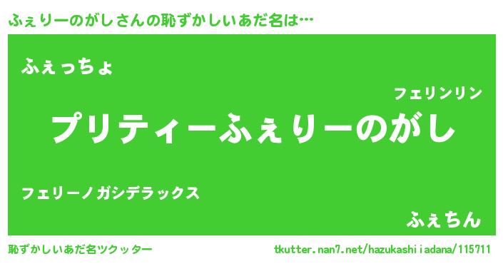 | 胡散臭い通販商品みたいなあだ名 | 『モテモテ間違いなし水晶球…その名も「ふぇりーのがし」』 |