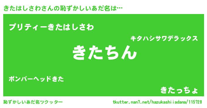 | ヘコむあだ名 | 『きたはしさわ(笑)』『きたっふぃ~』 |