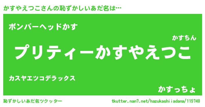 | 男性向けラノベタイトル風あだ名 | 『はたらくかすやえつこさま!』 |