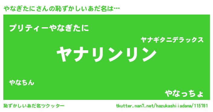 | ヒーロー風カッコイイあだ名 | 『黄金騎士ヤナ』『スーパーヤナギタニ』 |