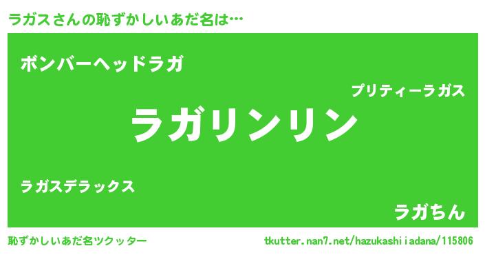 | 女子向けラノベタイトル風あだ名 | 『ラガス様がみてる』『ラガス恋絵巻』 |