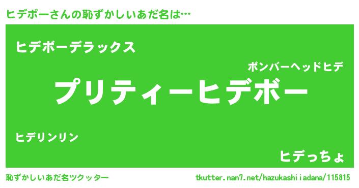| ヒーロー風カッコイイあだ名 | 『スーパーヒデボー』『最強戦士ヒデボー』 |