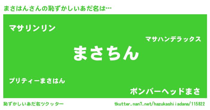 | 男性向けラノベタイトル風あだ名 | 『まさはん~年齢イコール彼女いない歴の魔法使い~』 |