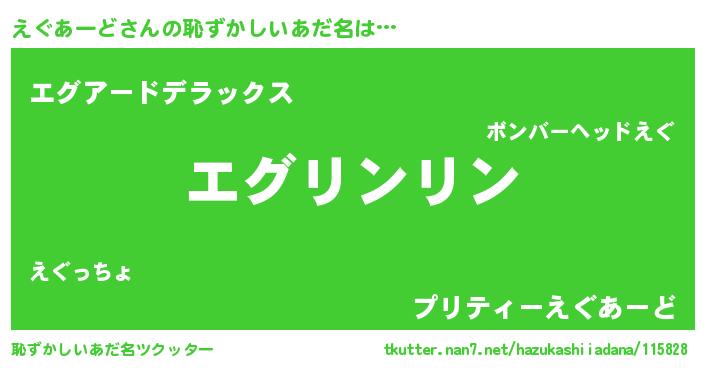 | 意味不明あだ名 | 『とにかく怪しいえぐあーど』 |