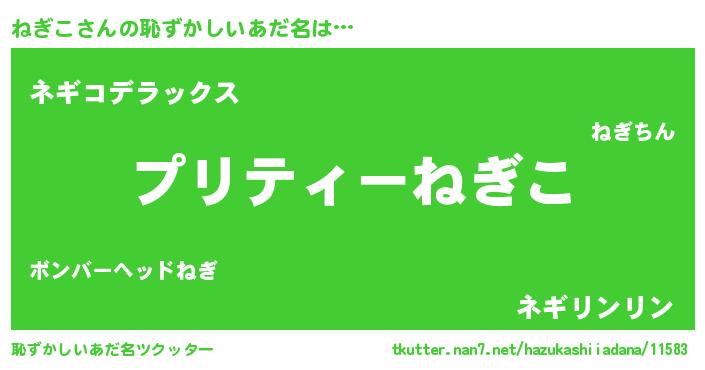 | 男性向けラノベタイトル風あだ名 | 『ねぎこの憂鬱』『魔法科高校のねぎこ』 |