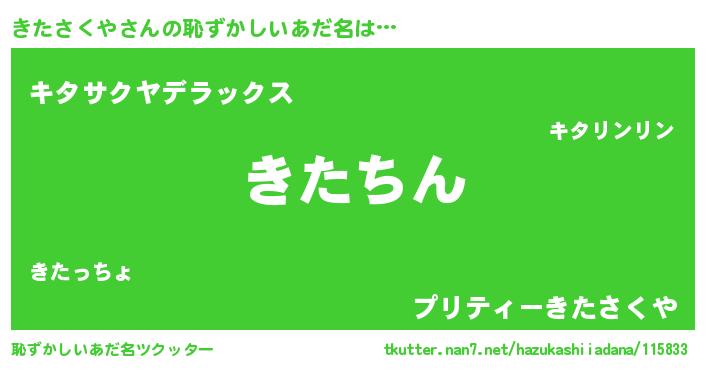 | ヘコむあだ名 | 『きたさくや(笑)』『きたふぇ~』 |