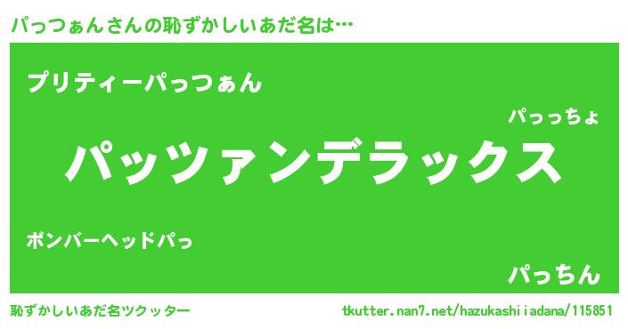 | ヘコむあだ名 | 『パっふぇ~』『パっつぁん(震え声)』 |