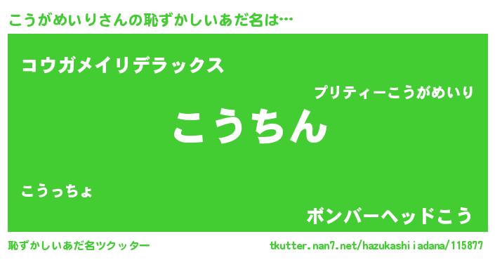 | 意味不明あだ名 | 『永久保存こうがめいり』 |