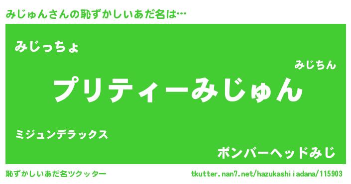 | 男性向けラノベタイトル風あだ名 | 『みじゅんの憂鬱』『ミジュンスレイヤー』 |