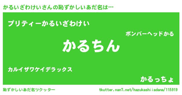 | ヘコむあだ名 | 『かるいざわけい(笑)』『かるふぇ~』 |