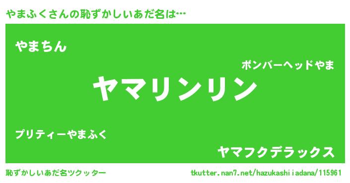 | 意味不明あだ名 | 『とにかく怪しいやまふく』 |