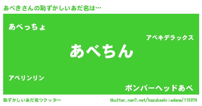 | 意味不明あだ名 | 『永久保存あべき』『あべきフォーエバー』 |