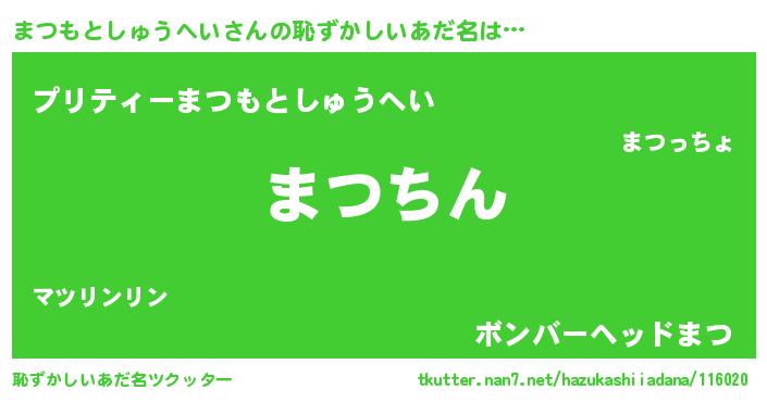 | 意味不明あだ名 | 『永久保存まつもとしゅうへい』 |