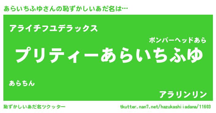 | ヒーロー風カッコイイあだ名 | 『スーパーアライチフユ』『幻影騎士アラ』 |
