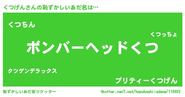 | ヘコむあだ名 | 『くつげん(笑)』『くつにゅー』 |