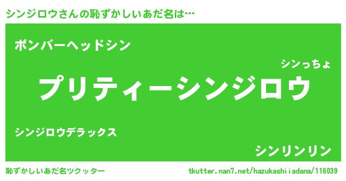 | 男性向けラノベタイトル風あだ名 | 『転生したらシンジロウだった件』 |