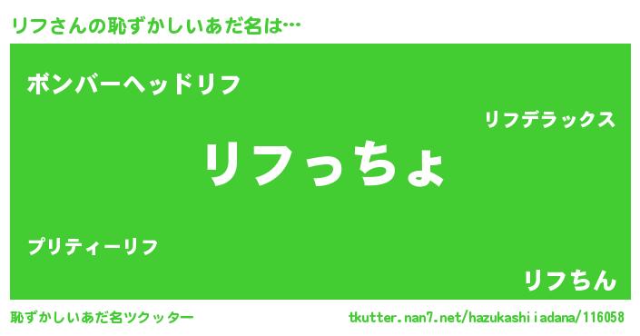 | 可愛いあだ名 | 『リフちー』『リフちゅっちゅ』 |