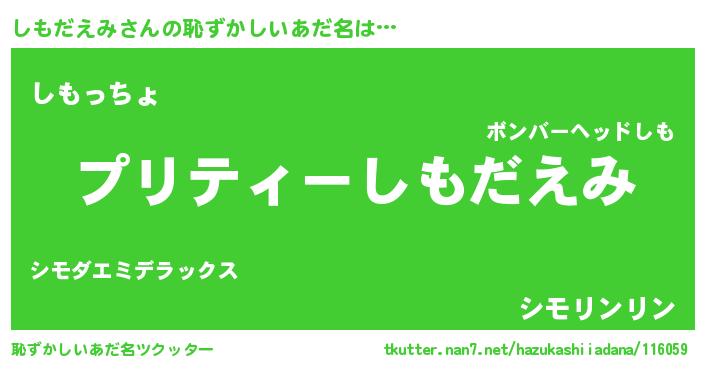| ヘコむあだ名 | 『しももー』『酢こんぶ』『しもお』 |