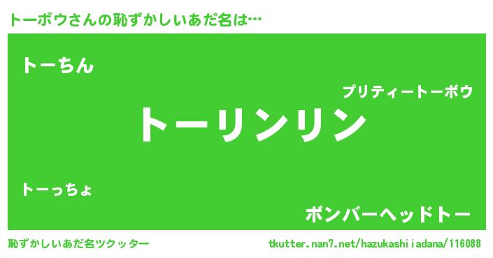 | 意味不明あだ名 | 『とにかく怪しいトーボウ』 |