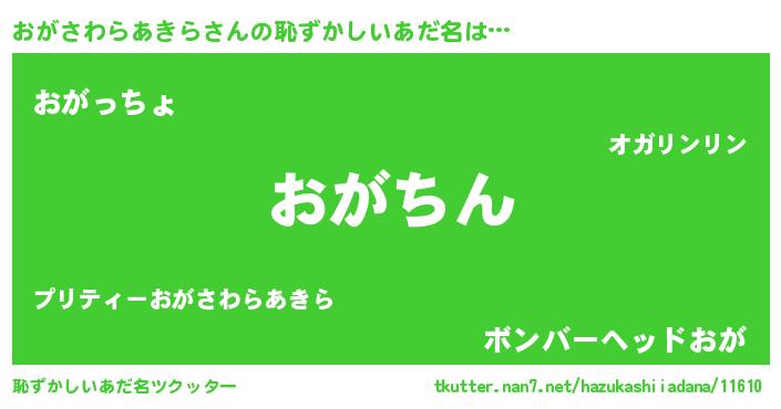 | 意味不明あだ名 | 『永久保存おがさわらあきら』 |