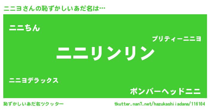 | ヘコむあだ名 | 『ニニっちょ』『ニニヨ(笑)』『豆乳』 |
