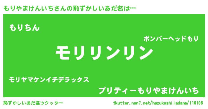 | 男性向けラノベタイトル風あだ名 | 『ダンジョンにもりやまけんいちを求めるのは間違っているだろうか』 |
