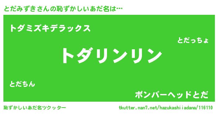 | ヒーロー風カッコイイあだ名 | 『仮面トダダー』『暗黒騎士トダ』 |