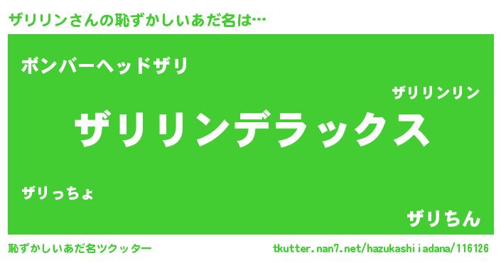 | 意味不明あだ名 | 『自称ザリリン』『永久保存ザリリン』 |