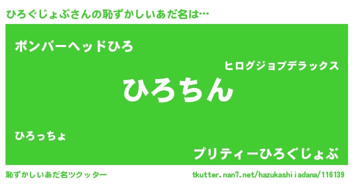 | 意味不明あだ名 | 『永久保存ひろぐじょぶ』 |
