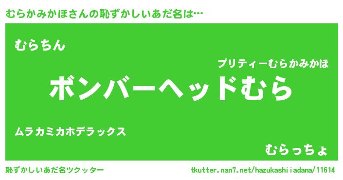 | 可愛いあだ名 | 『むらちゅっちゅ』『むらかみかほママ』 |